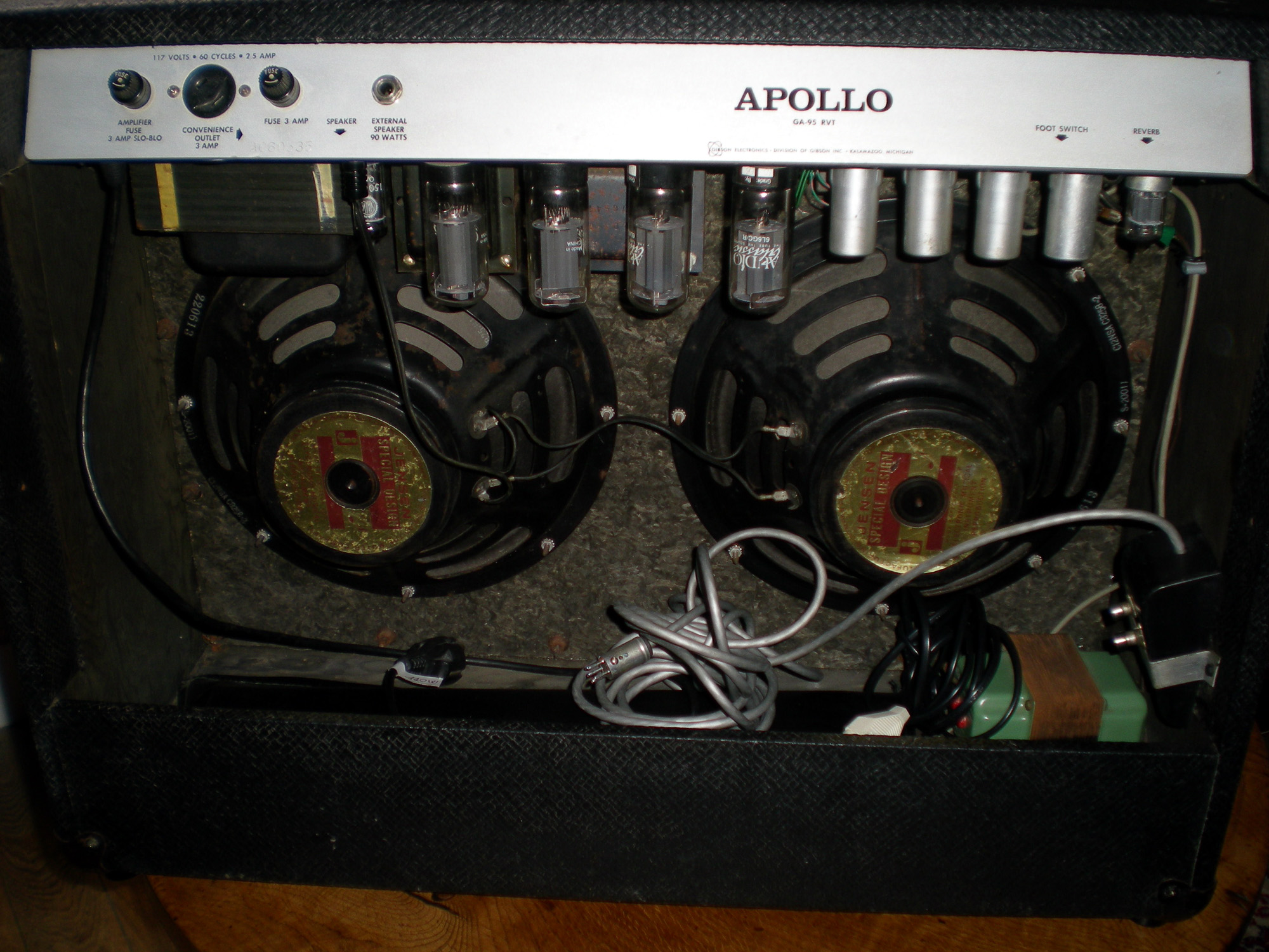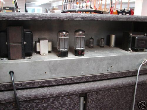 [This amp] sounds so great for guitar I could not bring myself to change it (see pics). The stock tube line-up is 2x5879, 1x12AU7 2x6L6 and 1x5V4. This tube combination yields a great jazz amp with the six 8 inch speaker giving great clarity and definition to the mids and also a good tight and ample bottom end. You can also turn it into a raging blues and rock monster by just changing the 12AU7 to a 12AX7. It has one high gain channel and a normal so by using an AB box it is like having and extra lead channel. It sounds like no other amp I have ever heard maybe like a pentode driven tweed deluxe on steroids with a great tight mid-bass thump and fantastic mids with warmth. (ebay, June 21, 2003)
