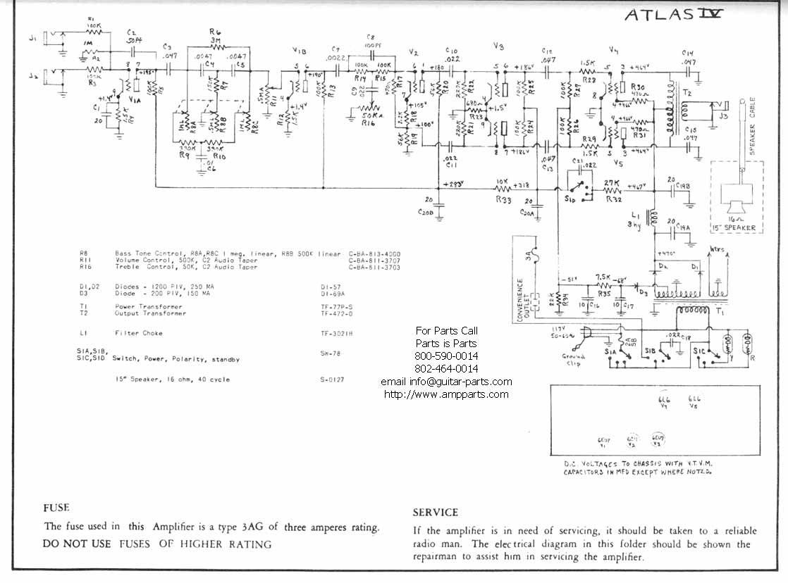 The Titan I, III, & V all used the same head. It was rated at 65 watts. Reviews usually found under 'bass amps" (reason unknown) on Harmony Central, but only the V was really considered for lead and bass. The III, in fact, uses two sealed-back Jensen Special Design mid-range speakers with a passive cross-over to either an Altec or CTS 15" serving the lower frequencies. The III was definitely for lead and/or rhythm. (Tom Kaemmerling)