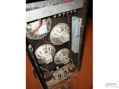 Speakers: Vertical 2x10", Usually 50-watt 8-ohm Jensen C10N wired in series for 16 ohm total impedance