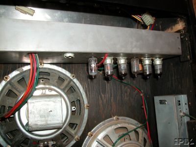 The amp on the pics below is probably a 1956 (dating on speakers). Bought it specially for harmonica but I havent heard it sofar because of a litle malfunction in the amp (something with the power supp) (Jack).