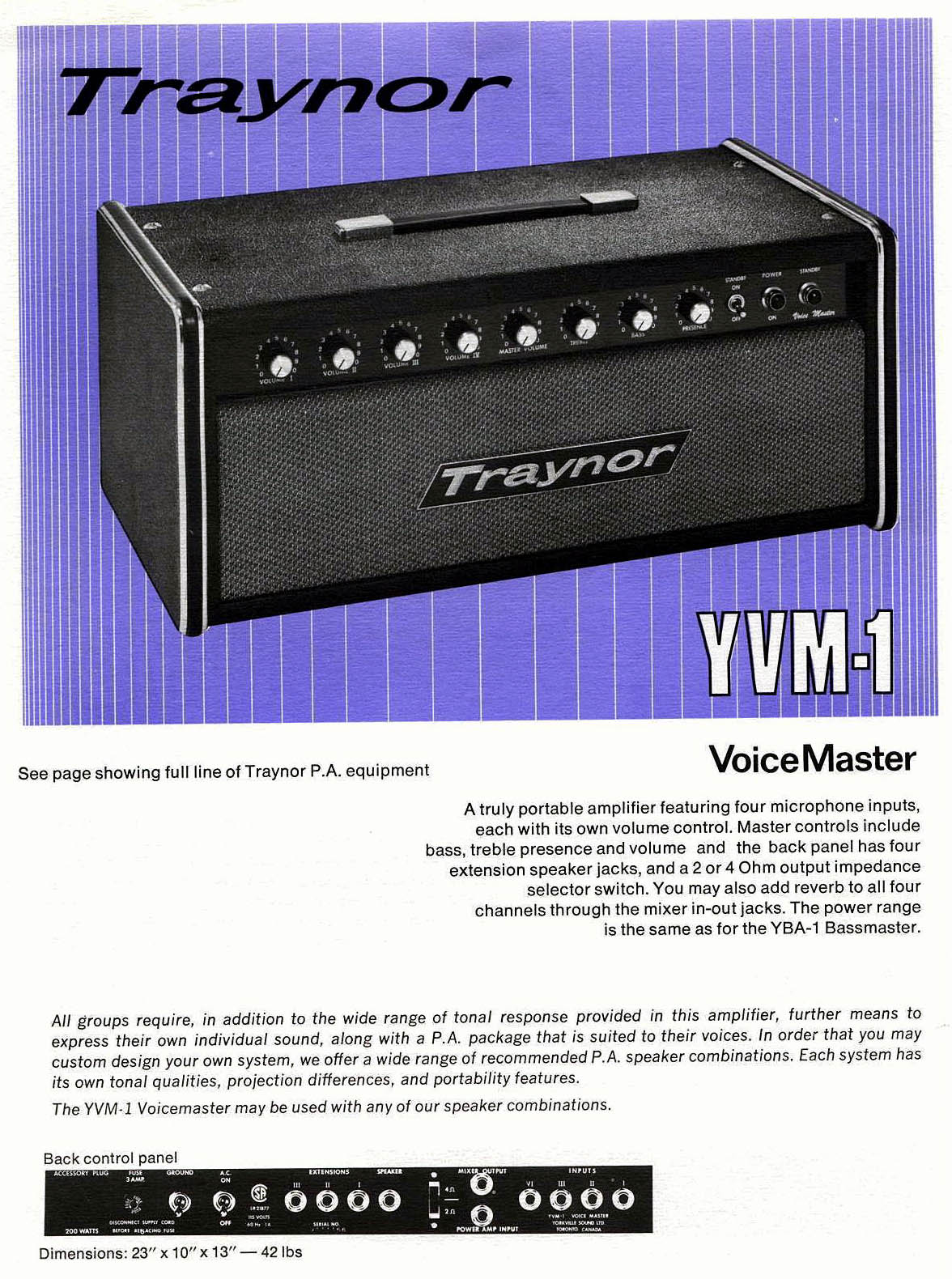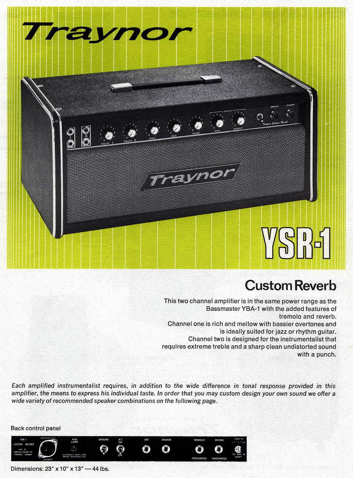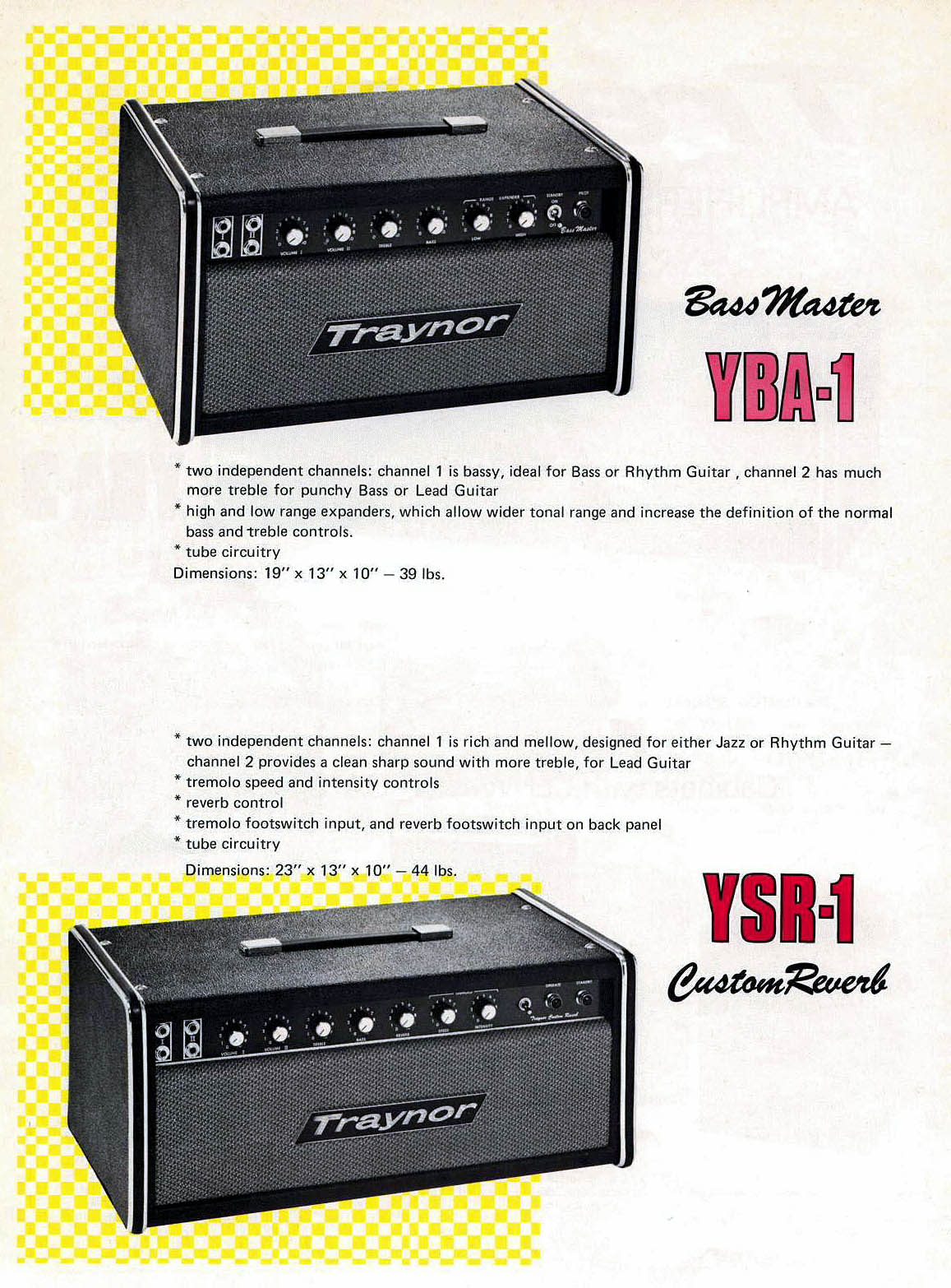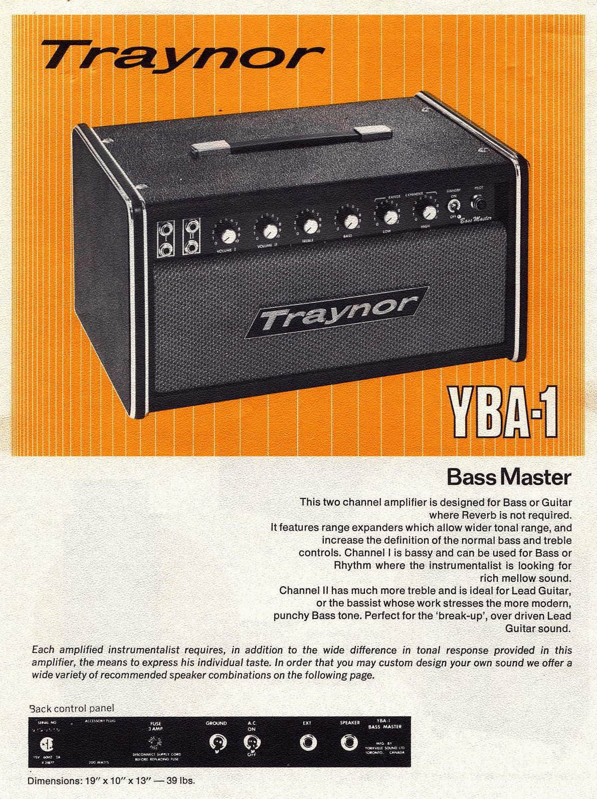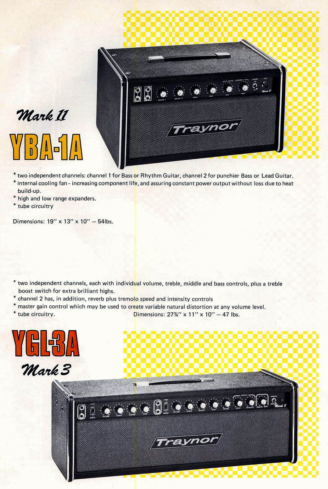 I own a Traynor YBA-1 amp head. I got it brand new back in the late 1960s (I traded a dealer my Fender Super reverb even for it). I've used it regularily throughout the years, gigging throughout the Detroit area, and later in the E.Lansing area in the late 1970s and early 1980s. The sound is fantastic. It can be heard on all my recordings, and you can [see] me using it in the videos of my band, Terrain.