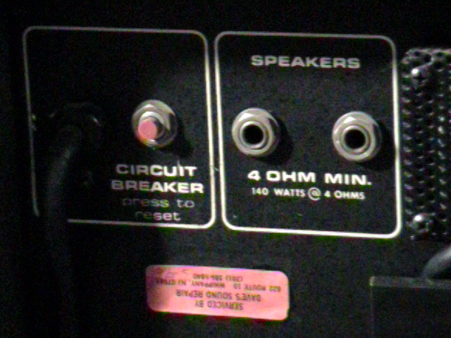 One main speaker output, impedance is not indicated (runs fine using a cab of