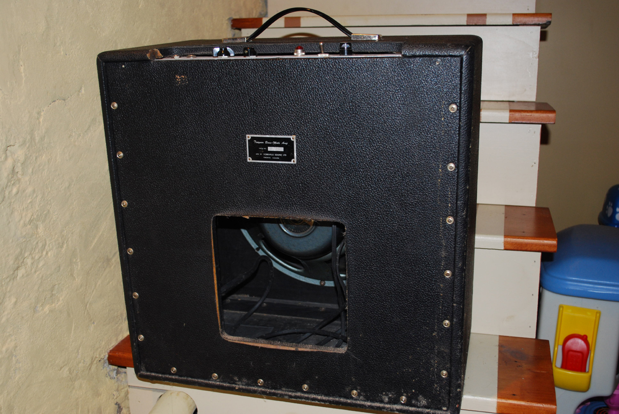 I found a Traynor YT-15 cabinet in a used furniture store. I had been asking the owner about two speakers he had for over three months and stopping by he finally had them uncovered enough to see. It is a late 60s I believe with a 4 digit serial #. The bottom was quite moldy but it cleaned up well and the inside was like new. I think I got a steal for $10.00.